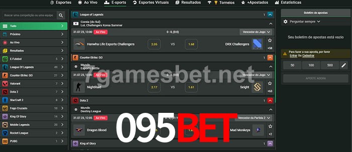 O 095Bet oferece uma grande seleção de opções de apostas em e-sports com probabilidades competitivas